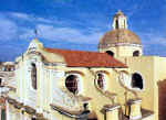 Cattedrale di IschiaLa Cattedrale d'Ischia dedicata all'Assunta o S. Maria della Scala (secondo l'antico titolo), fino al 1809 costituiva la chiesa dell'omonimo convento agostiniano, fondato dalla famiglia Salvacossa sicuramente nella seconda metà del secolo XIII. La chiesa fu ricostruita agl'inizi del sec. XVII e verso la metà del secolo XVIII su progetto di Antonio Martinetti. Madonna della Libera che si venera nella Cattedrale di IschiaLa decorazione a stucco è opera di Cesare Starace, realizzata del quinto decennio del secolo XVIII. Soppresso il convento nel 1809, l'anno successivo la chiesa fu trasformata in cattedrale perché quella della castello era stata bombardata nel corso delle operazioni belliche tra francesi e anglo-borbonici nel 1809. Il marmoreo altare maggiore con la balaustra sono opera di un ignoto marmoraro del sec. XVIII e provengono dalla cattedrale del Castello. Gli altari laterali, invece, furono realizzati durante l'episcopato di Giuseppe D'Amante (1818-1844). Il coro ligneo per i canonici risale all'inizio del secolo scorso. Nella prima cappella della navata di sinistra vi è il battistero. La vasca è quella dell'antica cattedrale e poggia su tre statue raffiguranti le virtù cardinali (ne manca una quarta) attribuite ad Antonio Raboccio da Piperno tra la fine del secolo XIV e l'inizio del successivo. A questo fonte battesimale fu battezzato il 15 agosto 1654 Carlo Gaetano Calosirto, futuro San Giovan Giuseppe della Croce. Infondo alla navata vi è un Crocifisso ligneo del periodo romanico proveniente dal Castello. Tra le opere pittoriche c'è da ricordare la tavola della Madonna della Libera, in fondo alla navata di destra, del sec. XIV, proveniente dall'antica chiesa del Castello; un S. Giuseppe di Alfonso Di Spigna, tre grandi tele di Giacinto Diano del 1760, una tavola raffigurante S. Tommaso d'Aquino di un anonimo della fine del secolo XV e un S. Giorgio del sec. XVI. (Queste due ultime opere sono oggi conservate in episcopio). (Agostino Di Lustro)